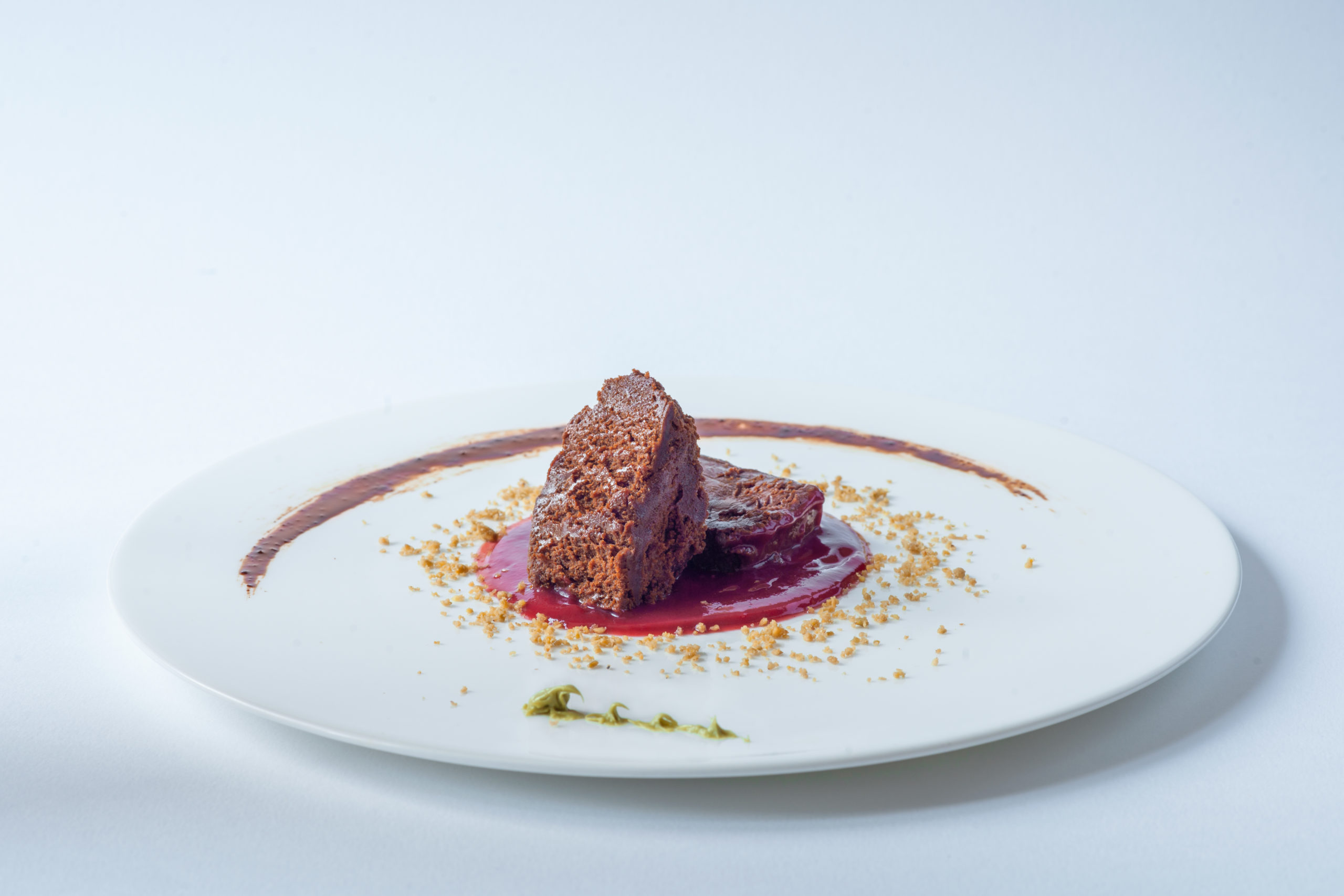 Lingotto di cioccolato fondente Valrhona guanaja 70%, salsa ai lamponi
